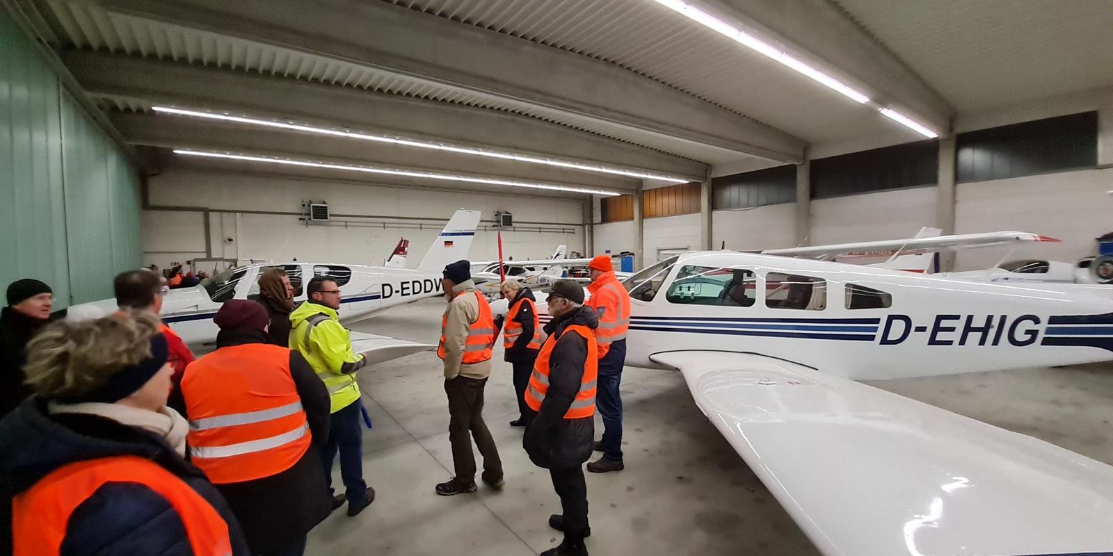 Nach dem Vortrag führte Herr Kaußler und einer seiner Mitarbeiter die Teilnehmer über das Vorfeld und durch die Hangars, in denen sich die Flugzeuge und die Diagnose-Stationen von BMW befinden. Die Teilnehmer hatten die Möglichkeit, sich ein eigenes Bild von den Einrichtungen zu machen und Fragen zu stellen.