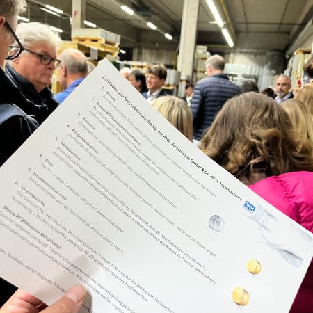Im Anschluss übernahm Rainer Gräf die Führung und zeigte der Gruppe die benachbarte Flaschenverschluss-Fabrik AWK. Hier wurde den Teilnehmern ein interessanter Einblick in die Herstellung von Aluminiumverschlüssen gewährt, die unter anderem für Spirituosenflaschen verwendet werden. Besonders beeindruckend war die Effizienz, mit der die Maschinen die Verschlüsse in verschiedenen Größen und Formen fertigen.