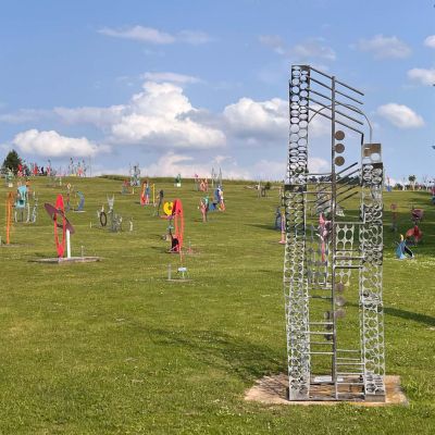 Eindrucksvoll war der Besuch in den Werkstätten des Künstlers, die einen authentischen Blick auf den kreativen Entstehungsprozess seiner Werke ermöglichten. Anschließend ging es durch den weitläufigen Eisenpark, in dem zahlreiche monumentale Skulpturen und Installationen die Gedankenwelt Claussens sichtbar machen. Anhand ausgewählter Werke erläuterte Frau Fiedler die Symbolik, die dahinterstehenden Ideen sowie die gesellschaftlichen und philosophischen Bezüge, die das Werk durchziehen.