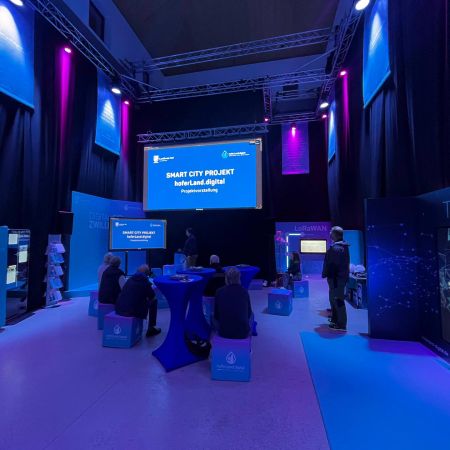 Besucherinnen und Besucher erhielten einen faszinierenden Einblick in ein vollständiges 3D-Modell des gesamten Landkreises Hof. Dieses „digitale Abbild“ bündelt unterschiedlichste Daten: von Solarpotential-Analysen für einzelne Gebäude über Hochwassersimulationen bis hin zu Infrastrukturdaten und Standortanalysen für Unternehmen oder Touristen. So können Bürger, Verwaltung und Unternehmen künftig auf einen zentralen, stets aktuellen Datenkatalog zugreifen.