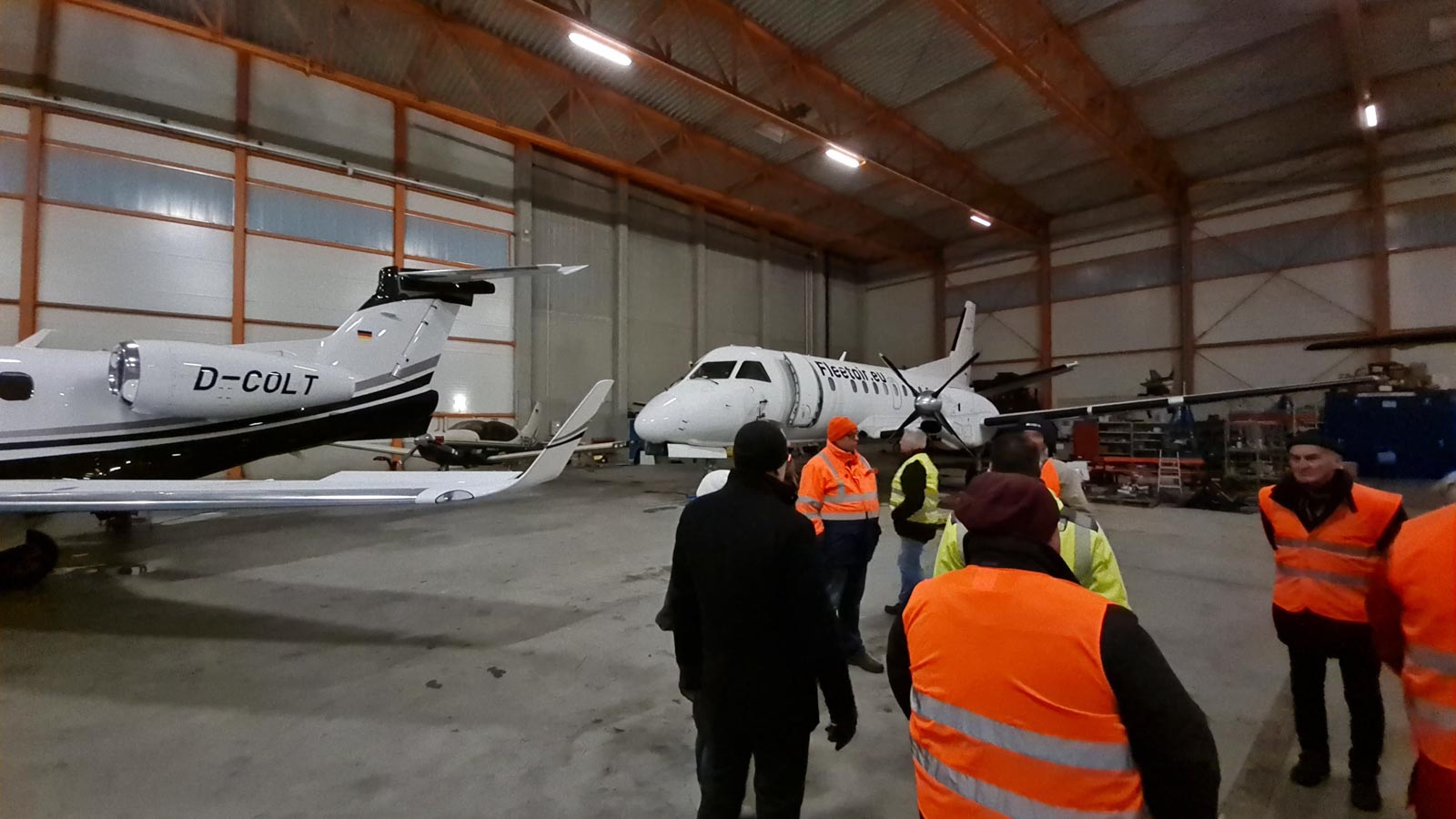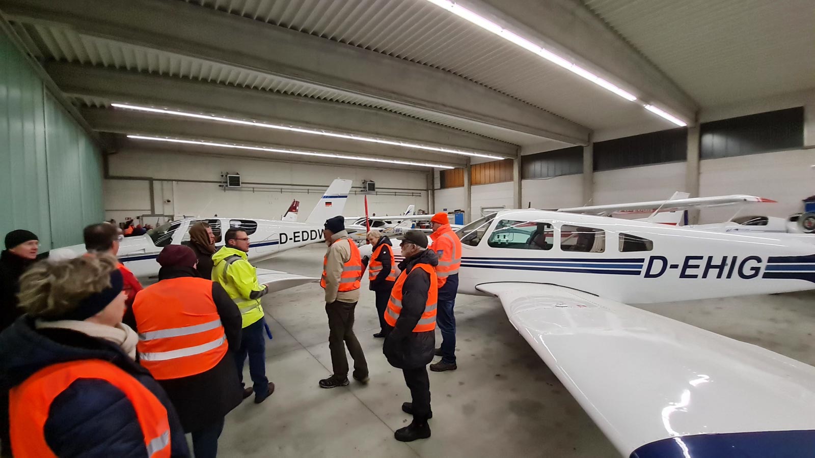 Nach dem Vortrag führte Herr Kaußler und einer seiner Mitarbeiter die Teilnehmer über das Vorfeld und durch die Hangars, in denen sich die Flugzeuge und die Diagnose-Stationen von BMW befinden. Die Teilnehmer hatten die Möglichkeit, sich ein eigenes Bild von den Einrichtungen zu machen und Fragen zu stellen.