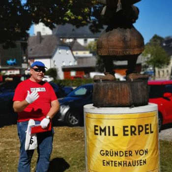 Die winFORS-Mitglieder versammelten sich in Schwarzenbach Saale, um an der "winFORS Wanderung" teilzunehmen, die dieses Mal eine ganz besondere Note hatte. Herr Stumpf, der als Panzerknacker verkleidet war, führte die Teilnehmer durch die Stadt und zeigte auf humorvolle Weise die Parallelen zu Entenhausen auf, wie sie über die Jahre von der Übersetzerin Erika Fuchs in den Comics immer wieder geschaffen wurden. Diese unterhaltsame und kreative Herangehensweise verlieh der Wanderung eine einzigartige Atmosphäre und sorgte für viel Spaß und Gelächter unter den Teilnehmern.
