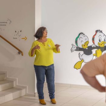Nach der unterhaltsamen Stadtführung gönnten sich die Teilnehmer eine Stärkung in der örtlichen Fleischhauerei, um sich auf das nächste Highlight vorzubereiten. Anschließend begaben sie sich ins Erika Fuchs Museum, das der berühmten Übersetzerin Erika Fuchs gewidmet ist. In einer spannenden Führung erfuhren die Teilnehmer mehr über das Leben von Erika Fuchs, ihre bedeutende Rolle bei der Übersetzung von Disney-Comics und den Einfluss dieser Comics auf die deutsche Sprache. Das Museum bot Einblicke in die faszinierende Welt der Comic-Übersetzung und zeigte, wie humorvolle Geschichten aus Entenhausen die deutsche Sprache nachhaltig geprägt haben.