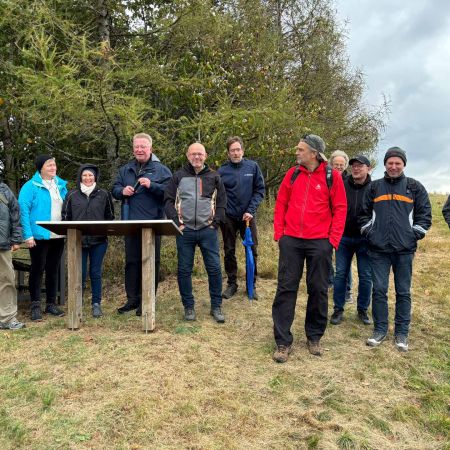 Die Wanderung begann mit einer kurzen Tour durch die malerische Umgebung von Presseck, die den Teilnehmern die Schönheit des Frankenwaldes näherbrachte. Trotz des durchwachsenen Wetters herrschte eine hervorragende Stimmung, und die Gruppe nutzte die Gelegenheit, sich untereinander auszutauschen und die Natur zu genießen.