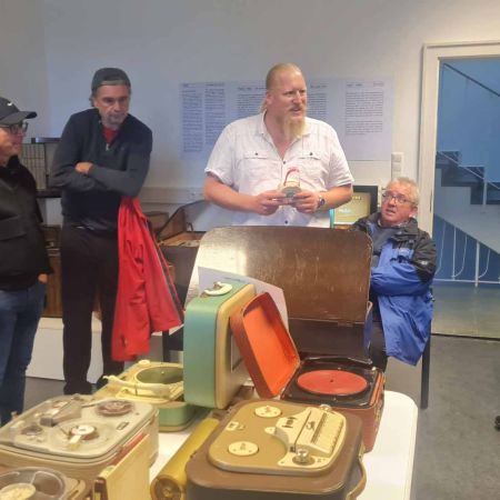 Nach dieser informativen Station ging es für die Gruppe weiter zum Audiomuseum in Presseck. Dort wurden die Teilnehmer von Michael Kolb, einem leidenschaftlichen Radioenthusiasten und Vorstand des Audiomuseums, durch die faszinierende Geschichte des Rundfunks geführt. In anschaulichen Erklärungen und mit vielen praktischen Vorführungen tauchte die Gruppe in 100 Jahre Radiogeschichte ein und erlebte die Entwicklung dieses Mediums hautnah mit. Besonders beeindruckend war die Darstellung, wie der Rundfunk in Deutschland die Gesellschaft und den Alltag über die Jahrzehnte beeinflusst hat. Die Ausstellung bot einen spannenden Einblick in die technische und kulturelle Entwicklung des Rundfunks und zeigte die vielfältigen Exponate, von alten Radiogeräten bis hin zu modernen Übertragungstechnologien.