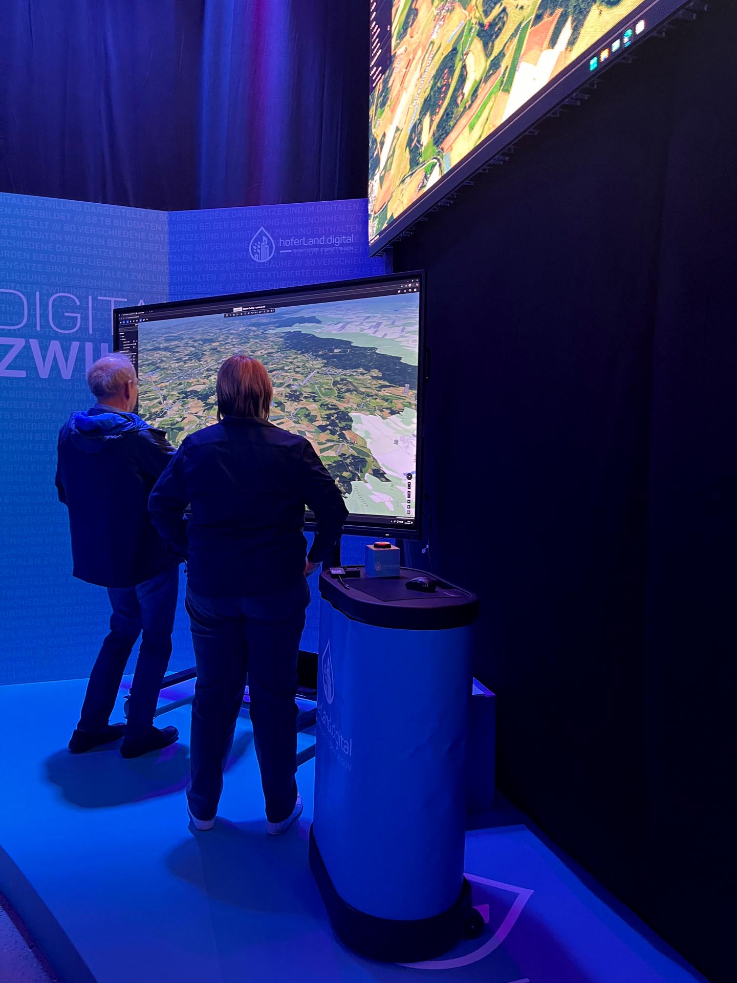 Besucherinnen und Besucher erhielten einen faszinierenden Einblick in ein vollständiges 3D-Modell des gesamten Landkreises Hof. Dieses „digitale Abbild“ bündelt unterschiedlichste Daten: von Solarpotential-Analysen für einzelne Gebäude über Hochwassersimulationen bis hin zu Infrastrukturdaten und Standortanalysen für Unternehmen oder Touristen. So können Bürger, Verwaltung und Unternehmen künftig auf einen zentralen, stets aktuellen Datenkatalog zugreifen.