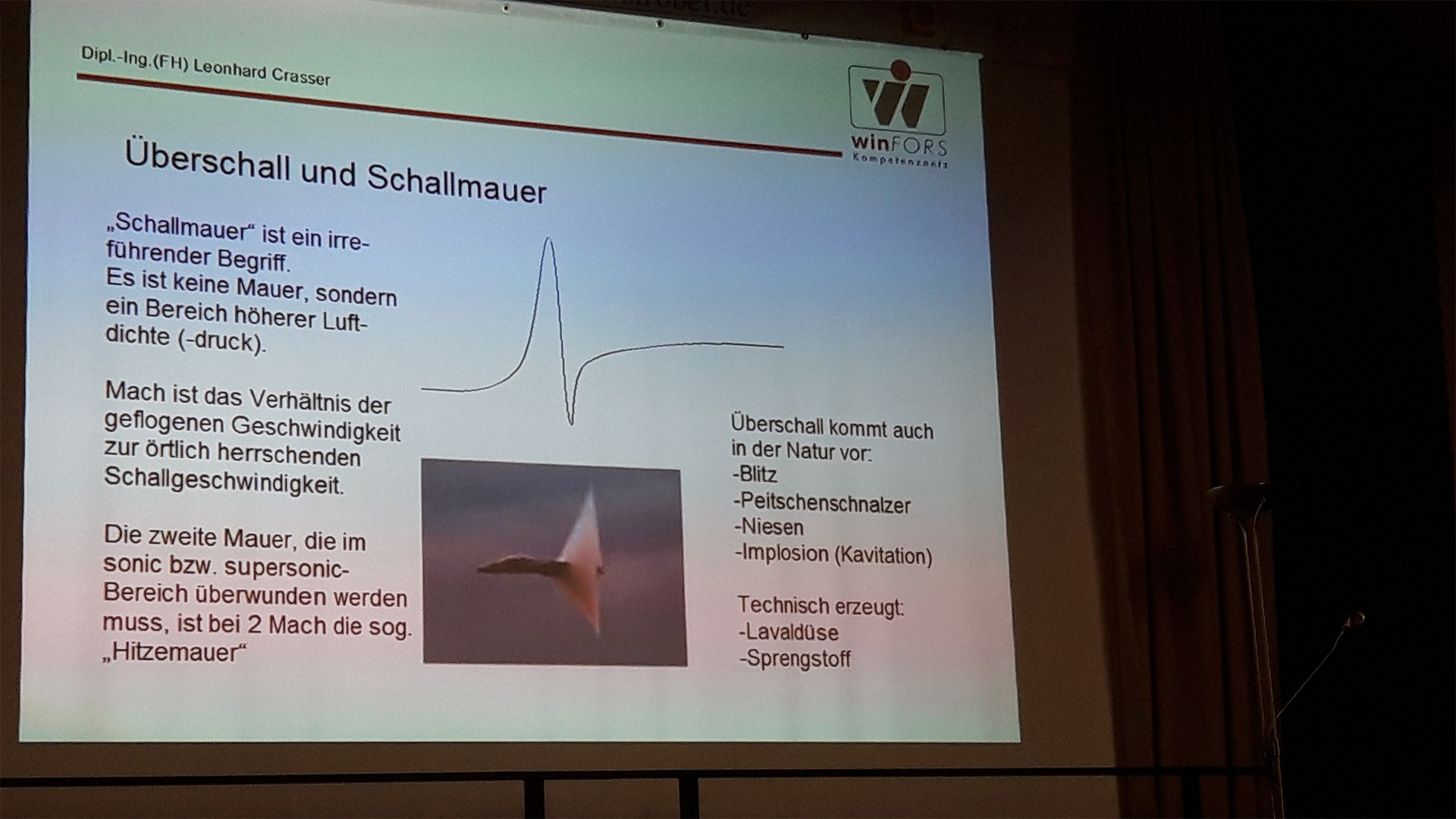 Dipl.-Ing. (FH) Leonhard Crasser informierte das winFORS-Publikum über das weite Feld der Aerodynamik. Mit überraschenden Vergleichen oder Bildern aus der „normalen Welt“ wie zum Beispiel das Fallen des Herbstlaubes brachte er das Thema näher. Zusammen mit den Besuchern entstand eine unterhaltsame Diskussion über Aerodynamik bei Flugtaxis oder den geplanten Frankenwald-Brücken.